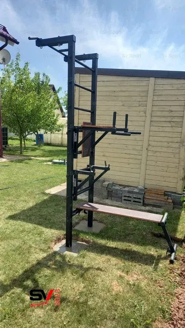 Уличный спортивный комплекс изготовлен из профильной трубы 60х60 мм, толщиной 3 мм.Устанавливаются спортивные комплексы путем бетонировки на глубину не менее 60 см.