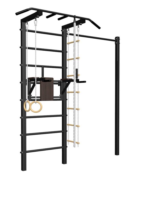 -Комплект: канат с крепежом 2,3 м, кольца гимнастические деревянные, лестница веревочная