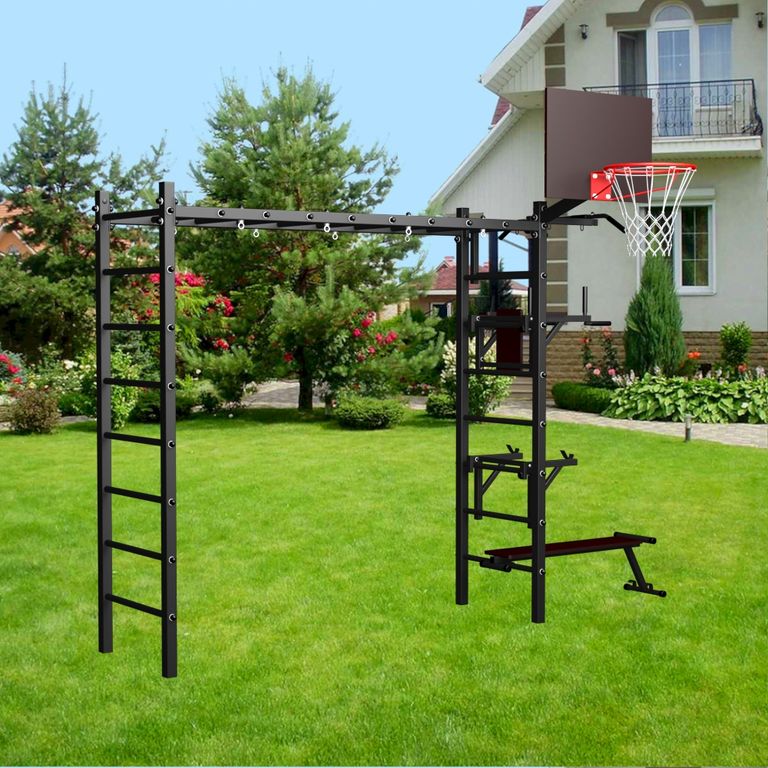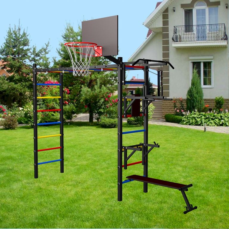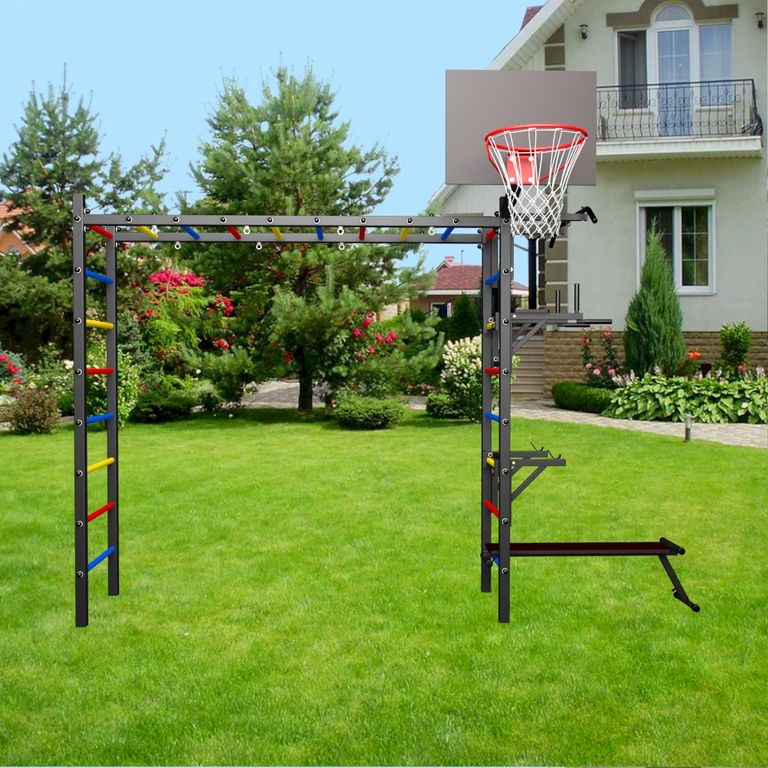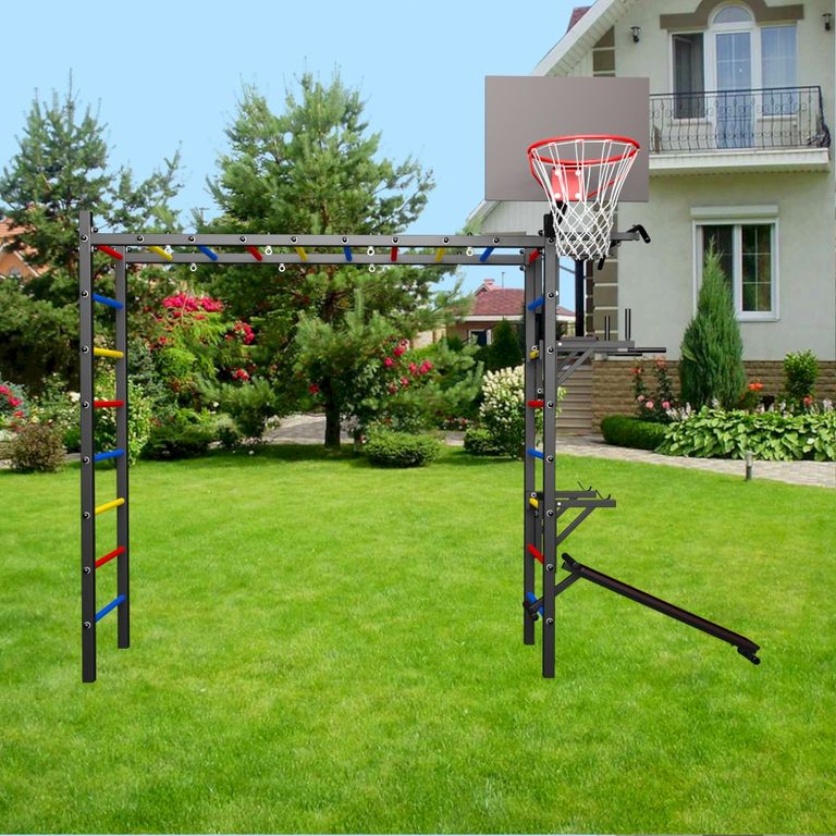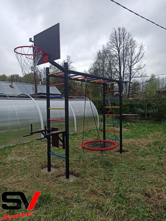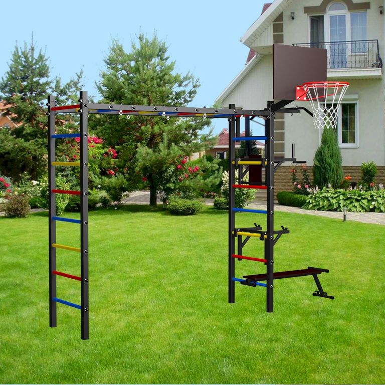 Уличная шведская стенка Sv Sport рукоход изготовлена из профильной трубы 60 х 60 х 3 мм. Ступени изготовлены из круглой, стальной трубы, покрытой резиной (не скользят, не натирают мозоли, не прокручиваются, не имеют запаха, приятны на ощупь). Окрашена качественной, импортной порошковой краской в 2 этапа, устойчивой к коррозии, истиранию и температурным перепадам. Все торцы, болты, гайки заглушены пластиковыми заглушками. Устанавливаются стойки путем бетонировки на глубину не менее 600 мм.