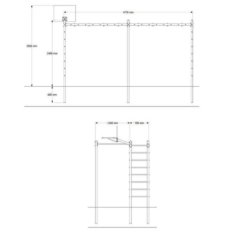 Вертикальные столбы Уличной шведской стенки Sv Sport Рукоход изготовлены из профильной трубы 60 х 60 х 4 мм, горизонтальные из профильной трубы 60 х 60 х 3 мм. Ступени изготовлены из круглой, стальной трубы, покрытой резиной (не скользят, не натирают мозоли, не прокручиваются, не имеют запаха, приятны на ощупь). Окрашена качественной, импортной порошковой краской в 2 этапа, устойчивой к коррозии, истиранию и температурным перепадам. Все торцы, болты, гайки заглушены пластиковыми заглушками. Устанавливаются стойки путем бетонировки на глубину не менее 600 мм.