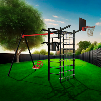 Уличный спортивно-игровой комплекс Sv Sport (с качелями) изготовлен из профильной трубы 60х40 мм, толщиной 3 мм (балка качелей), 2 мм (опоры и рукоход). Крепление опор изготовлено из пластины, толщиной 5 мм. Окрашен уличный спортивно-игровой комплекс качественной, импортной порошковой краской в 3 слоя, которая устойчива к истиранию и температурным перепадам. Все торцы, болты, гайки закрыты пластиковыми заглушками отличного качества. Использующиеся болты и гайки оцинкованы и соответствуют требованиям ГОСТ. Устанавливается спортивно-игровой комплекс путем бетонировки на глубину не менее 600 мм (опоры рукохода) и 400 мм (опоры качелей).
